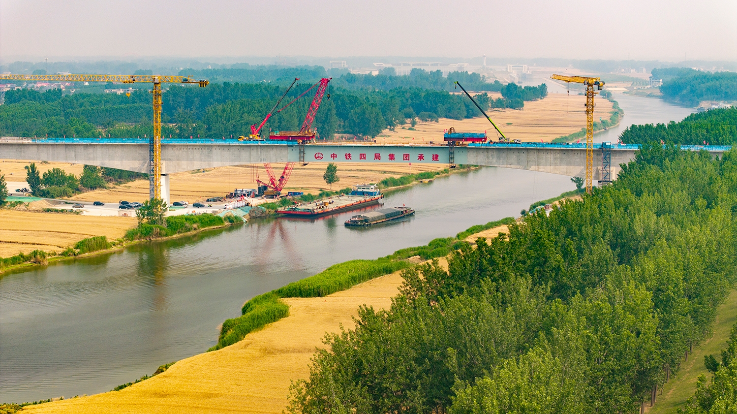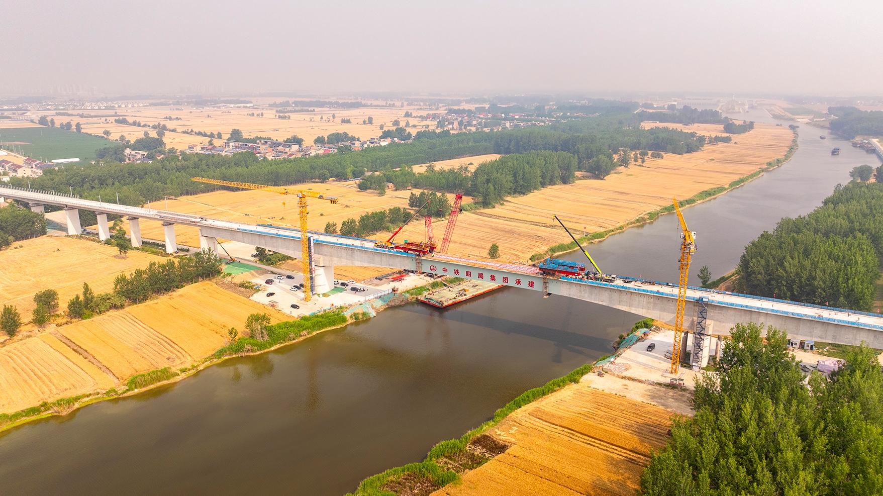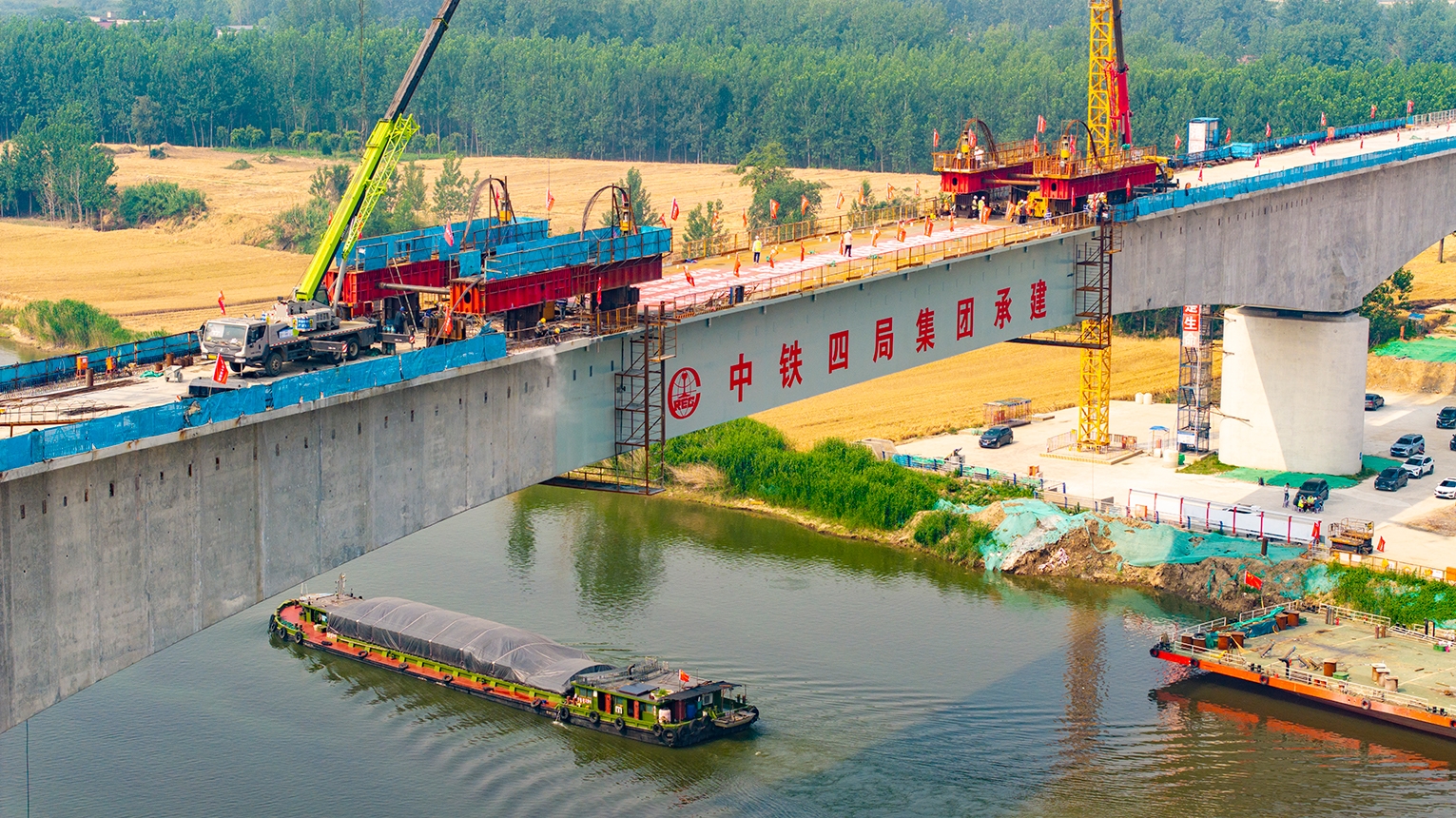 5月29日,中国中铁旗下中铁四局承建的阜淮城际铁路跨涡河特大桥180米钢混连续梁合龙,该项目全线桥梁贯通。